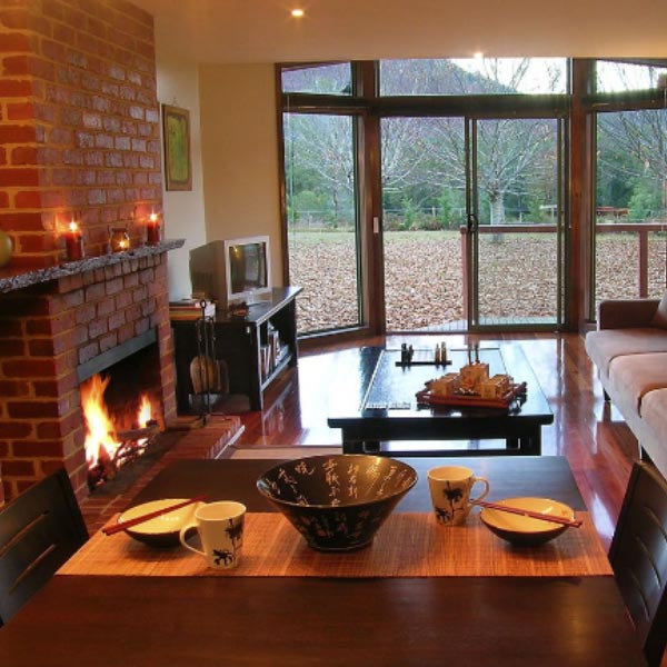 You’ll have great fun choosing between the two delightful cottages at Harvest Farm just outside Healesville – both have fires and the property itself has a lovely country feel with views to the mountains. Go for a wander and you’ll find sheep grazing in the paddocks and an amazing veggie garden tended by owners Karina and Bob.